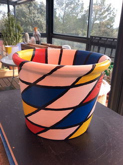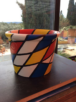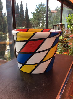 Exercice de style « Mondrian »peinture sur poterie - pour les initiés et amateur un poème : Le retour d’Ulysse (l’Odyssée d’Homère)