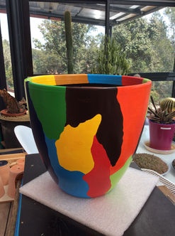 Exercice stylisé à la manière de « MIRÓ » sur poterie terre